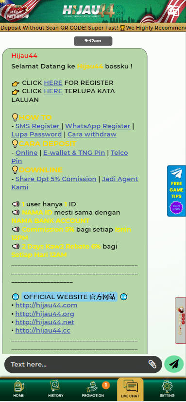 Hijau44 stays connected with players through its active presence on social media platforms. Players can use these channels to stay updated on promotions, announcements, and even reach out for assistance.